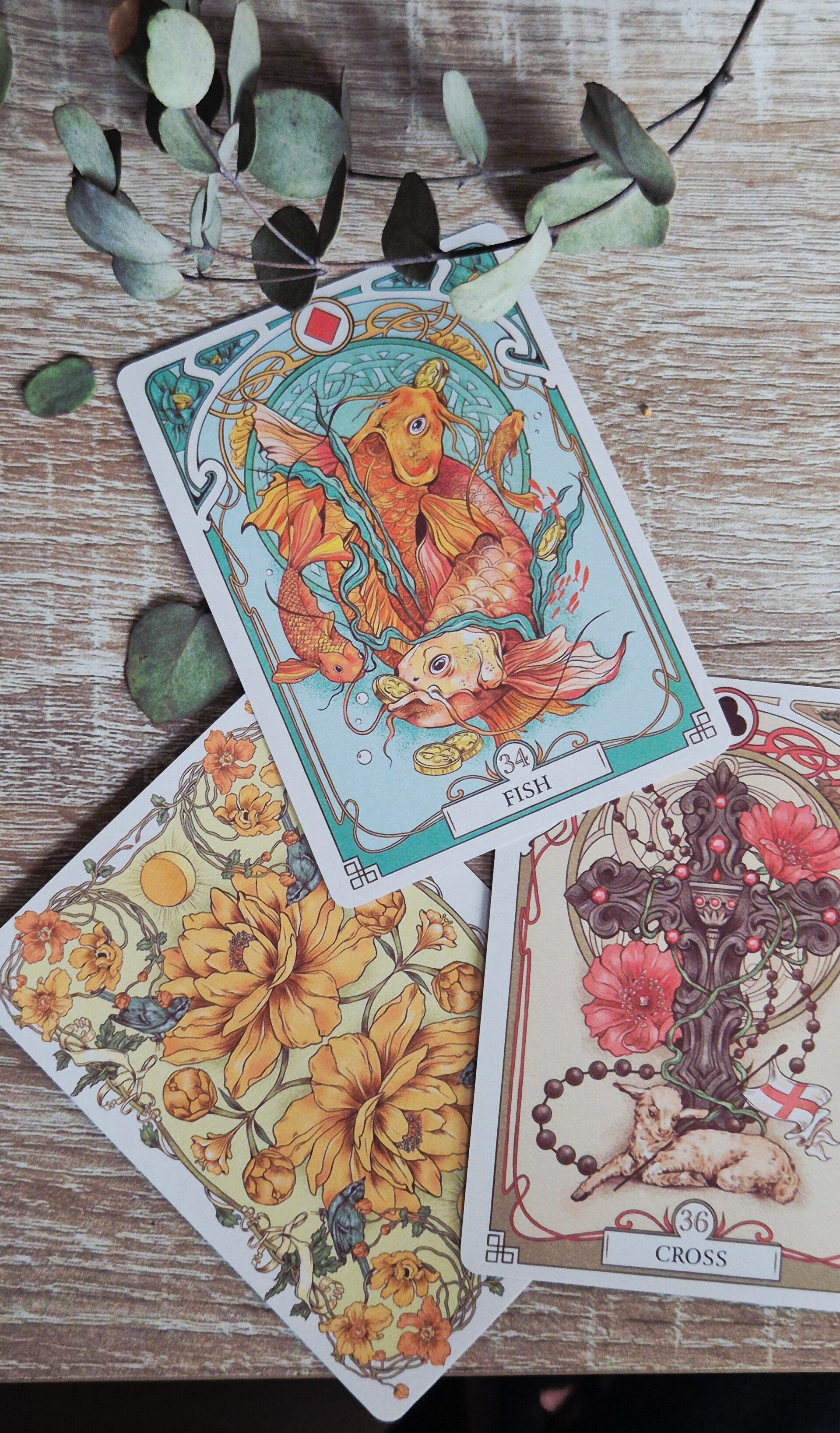 Une version revisitée et sensible du Lenormand, axée sur les émotions, les relations et les questions de cœur.
